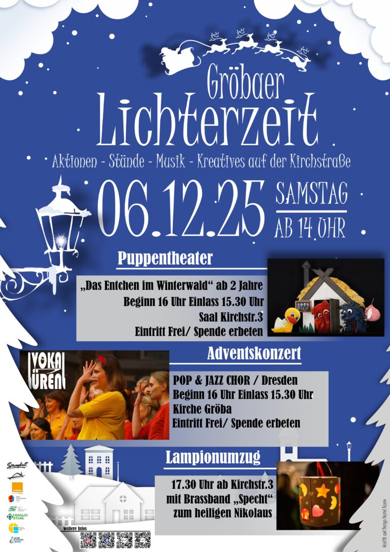„Wir in Gröba“ lädt gemeinsam mit der Evangl. Kirchgemeinde, der Feuerwehr Gröba, dem Sprungbrett e.V. und den vielen aktiven Bürgerinnen und Bürgern und Einrichtungen am 06.12.25, den Sonnabend vor dem 2.Advent zur Gröbaer Lichterzeit ein.